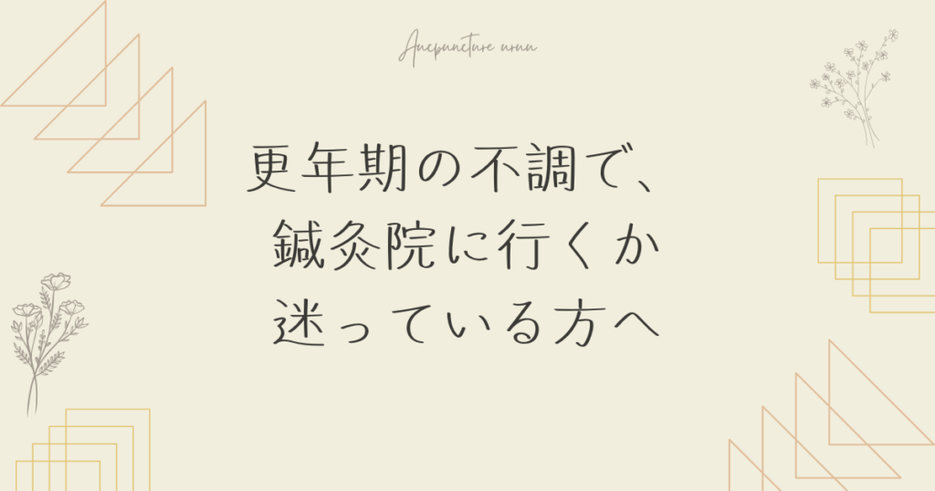 更年期の不調で、鍼灸院に行くか迷っている方へ